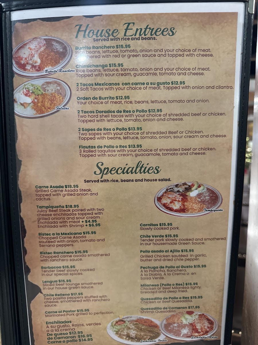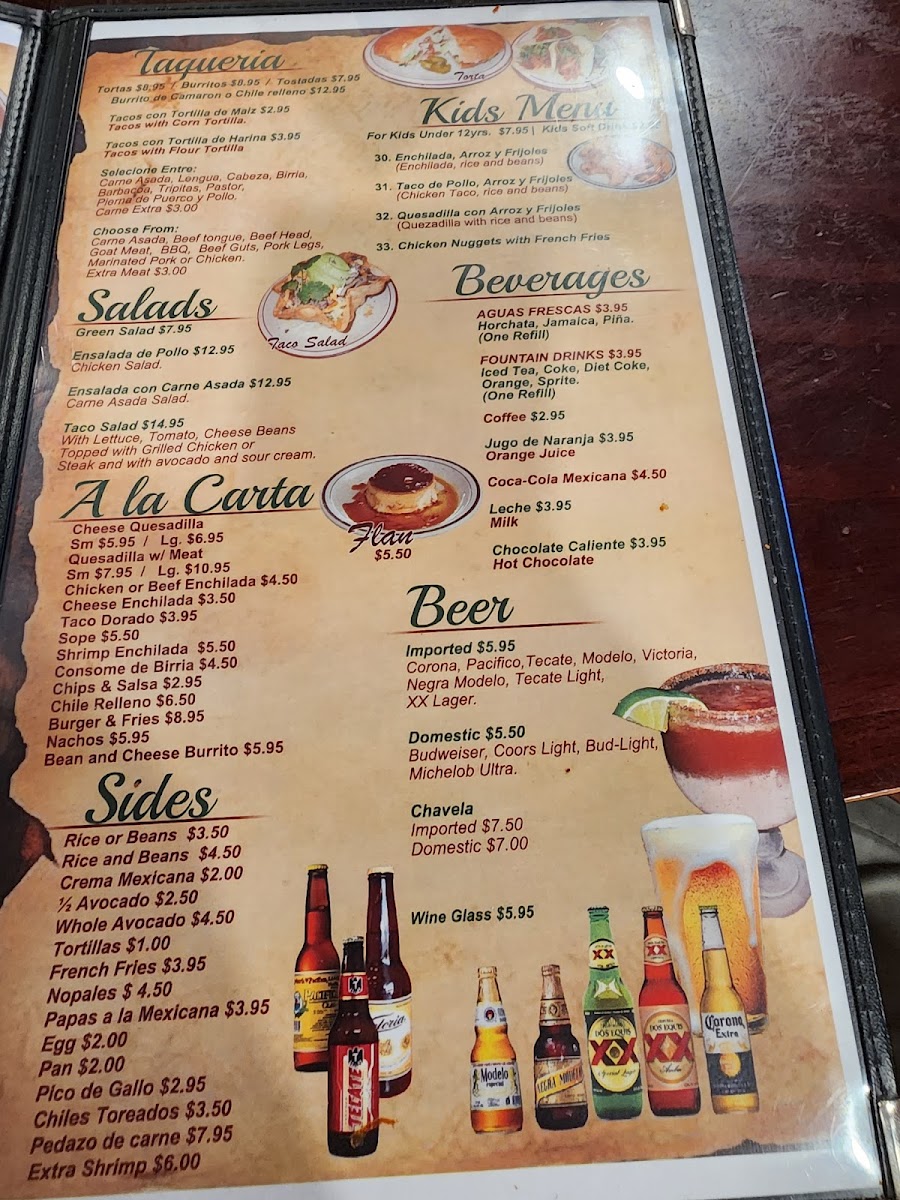 “ Visited this hidden gem while on vacation. The food was so good, I ate way too much. I had Tampequeno, which was two cheese enchiladas and a cut of Carne asada with rice and beans. I almost cleaned the plate. Wife had a combo she liked the verde enchilada. Kids both ate well, which is a definite sign of good food, they're picky. Boy had burger and fries. I thought it was nice they had that for the kids. Daughter had a flauta plate and ate almost all 3! Carolina was so kind and got us all we needed with gracious service. We'll be back for sure when in town next. If you live in town, make this your spot. The food is fantastic. ”